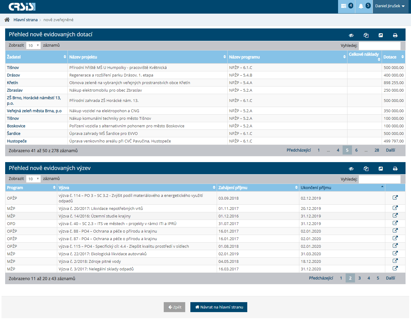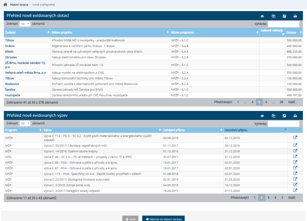 Přehledné zobrazení nově vyhlášených výzev pro státní správu a samosprávu