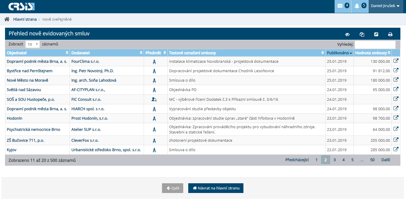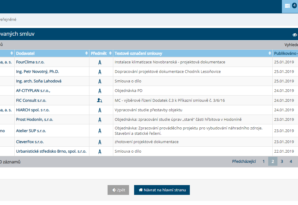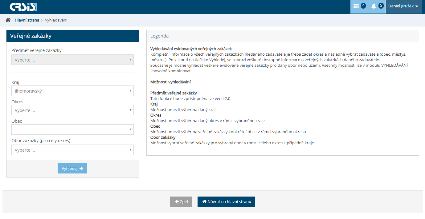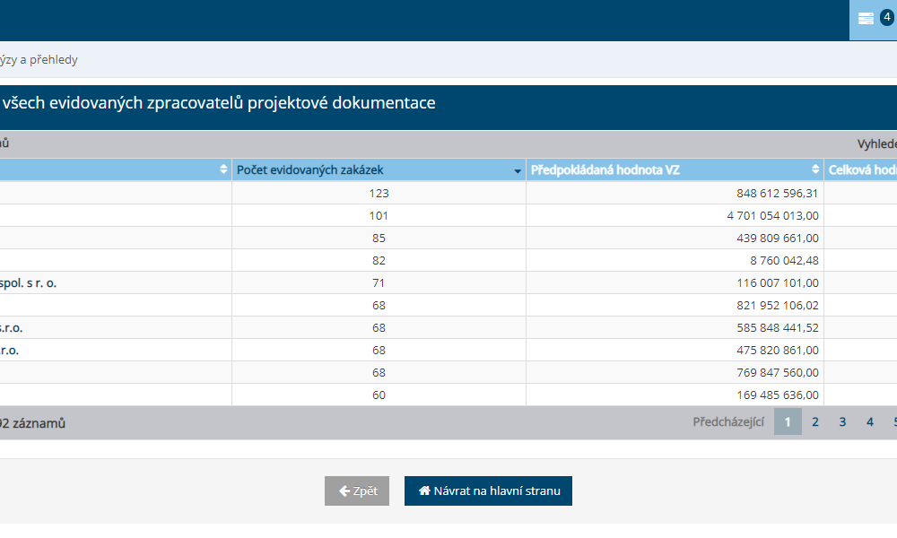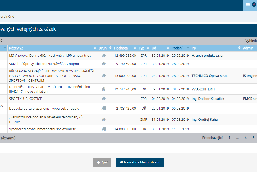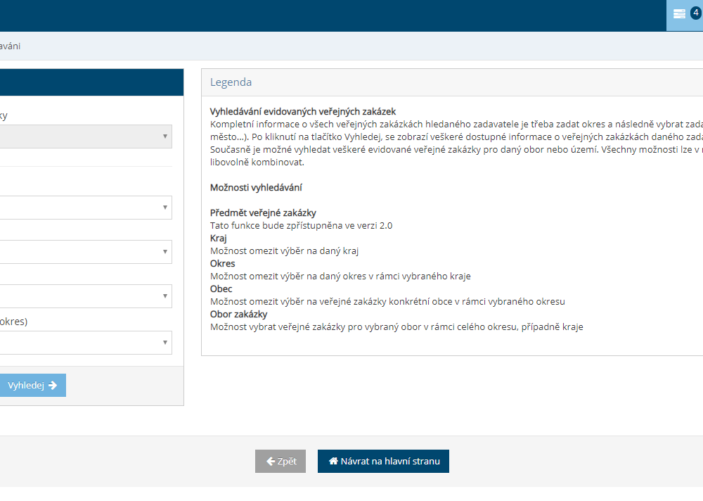 Možnost vyhledat dodavatele (zpracovatele projektové dokumentace, administrárota veřejné zakázky) na základě všech jeho realizací obdobného charakteru na celém území kraje, případně vybraného okresu.