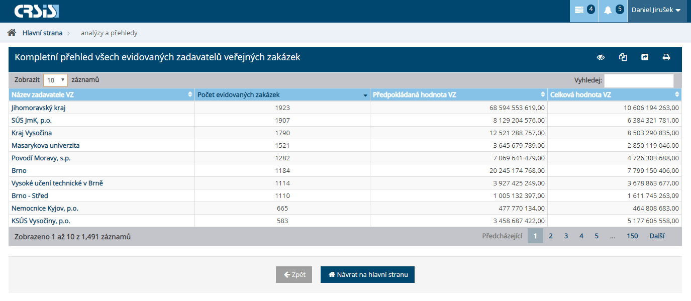 Díky komplexnosti dat systému CRSiS uživatel získává přehled o veškerých aktivitách jím sledovaného subjektu v oblasti veřejných zakázek,a tím kvalitní podklad pro své rozhodování